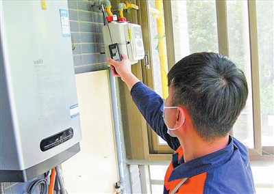 管道燃?xì)馄髽I(yè)工作人員常態(tài)化開展用戶家庭燃?xì)饩甙踩珯z查。本報記者 蘇振華 攝